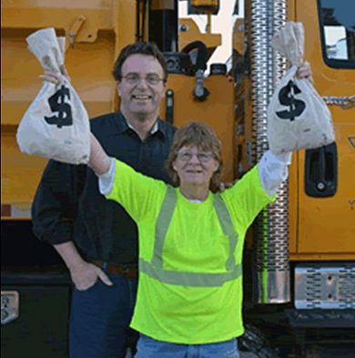 Kansas City District Sr. Maintenance Worker Diana Gough won $750 in January's Safety Jackpot Grab-Bag monthly drawing. PEAVY National Account Manager David Welch surprised Gough during the Liberty Maintenance Facility's morning muster.