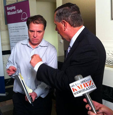 | colspan="2"| [[image:Main Page Nov | | colspan="2"| [[image:Main Page 2 Nov 8, 2013.jpg|center|390px|thumb|<center>''' Director Dave Nichols answers questions from the Kansas City Star and KMBZ about the draft Long Range Transportation Plan emerging from MoDOT’s [http://www.missourionthemove.org/ On the Move] campaign. '''</center> ]] | ||