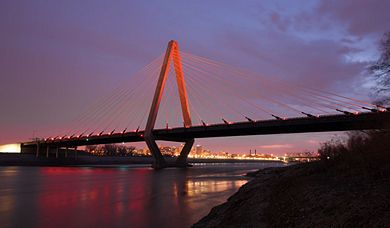 |colspan="2" | [[image:Main Page Mar 24, 2015.jpg|center|390px|thumb|<center>''' The Christopher S. Bond Bridge is decked out in orange lights as part of [http://www.modot.org/workzones/index.htm National Work Zone Awareness Week]. This week, driving safely in work zones is emphasized. ''' </center>]] | |||