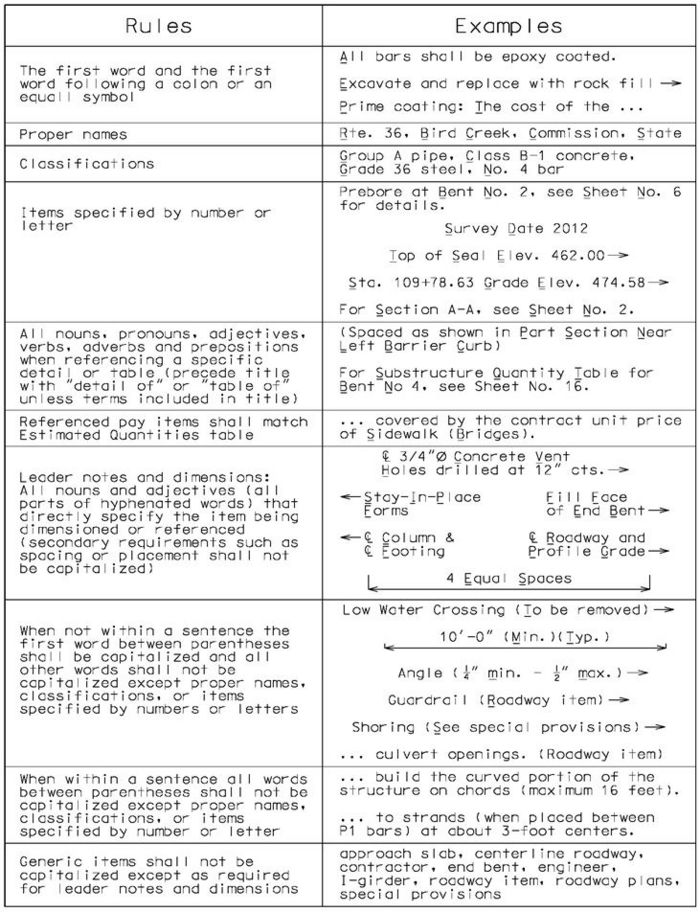 In details, the text used for labeling spans shall be all capitalized Small Bold text. Regular text shall be used in notes, with only the first letter being capitalized.
