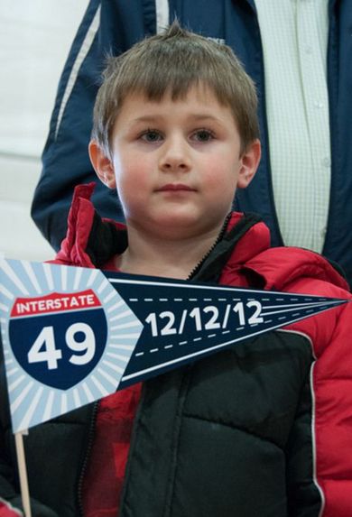 One of the attendees at the unveiling of the I-49 sign at Joplin East Middle School gym on Dec. 12th. About 180 miles of U.S. 71 is now officially I-49 between Kansas City and Pineville near the Arkansas border. You can watch the video shown at the unveiling of the I-49 sign.