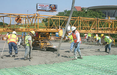 Walsh Construction employees pour concrete, pushing to open I-70 Blanchette Bridge to traffic before St. Charles’ annual Festival of the Little Hills in mid-August, nearly three months ahead of the original schedule.