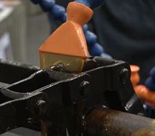 Sr. Maintc. Workers Chris Coon and Bill Lutgen (not shown) designed the Drag Chain Oiler to apply lubricant/sealer to drag chains on cinder beds. It easily and safely applies the correct amount of lubricant/sealer for end-of-winter maintenance. To use the oiler, simply position the oiler, aim the wands at the chains, and turn it on. The Drag Chain Oiler significantly cuts replacement and repair costs and keeps more of the material on the chains and off the ground. Another of the Tool & Equipment Statewide category winners at the Innovations Challenge Showcase, it can also be used by every MoDOT maintenance building.