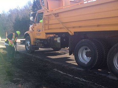 Int. Maintc. Worker Randy Ewing (with shovel) is part of the crew replacing 70 ft. of deteriorated pavement south of Oak Grove.